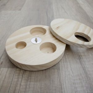 Des coupelles avec un couvercle à soulever en bois qui va inciter votre lapin à réfléchir pour atteindre les friandises placées à l’intérieur.