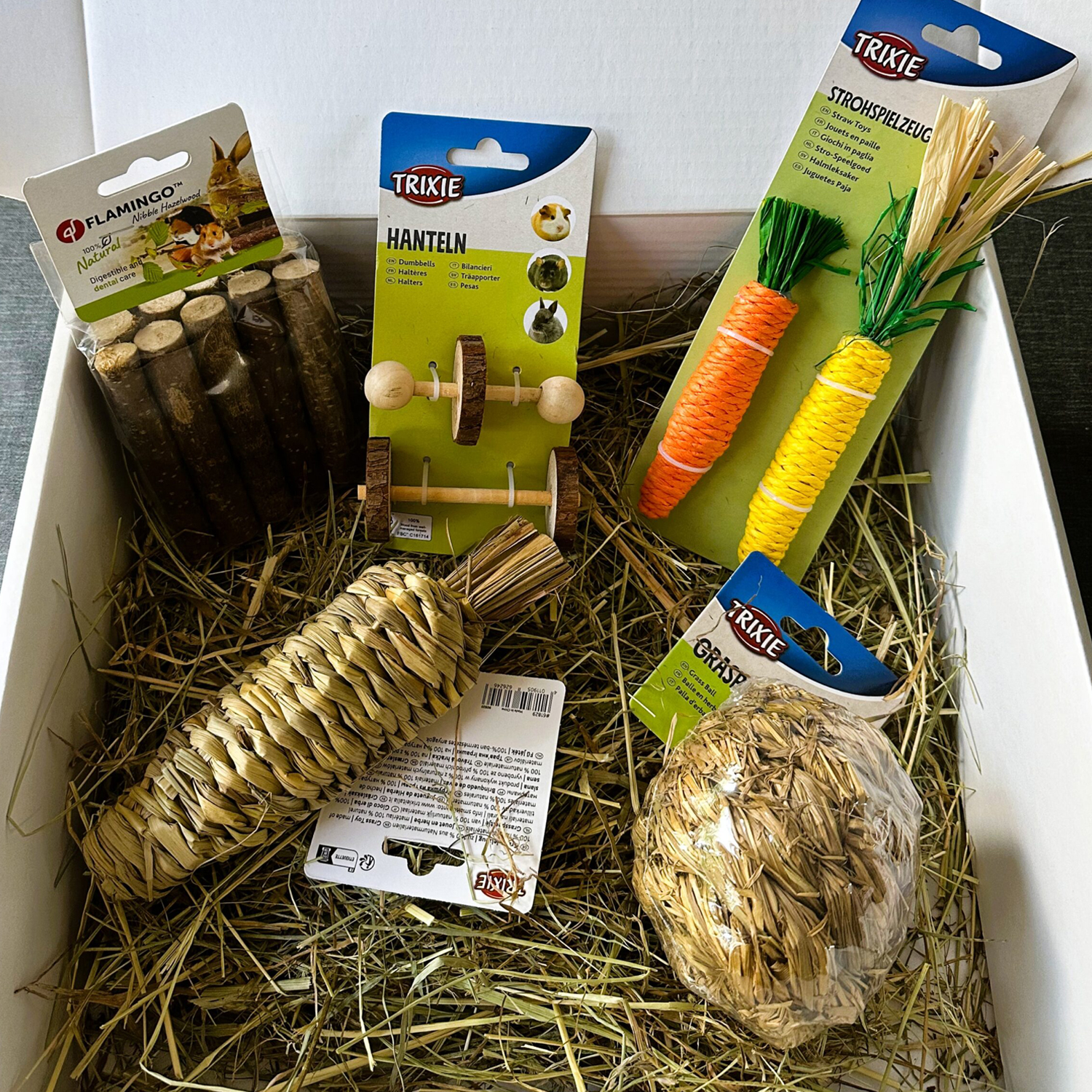 Offrez à votre lapin des heures de divertissement et de bien-être avec notre box jouets. Spécialement pensée pour répondre aux besoins naturels des lapins, cette box contient des jouets 100 % naturels qui favorisent la mastication, stimulent l’activité et préviennent l’ennui.